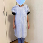 前中心は割って、一つ折りしてステッチしています。胸元がスラッシュ開きなので、割った方がすっきりしました。