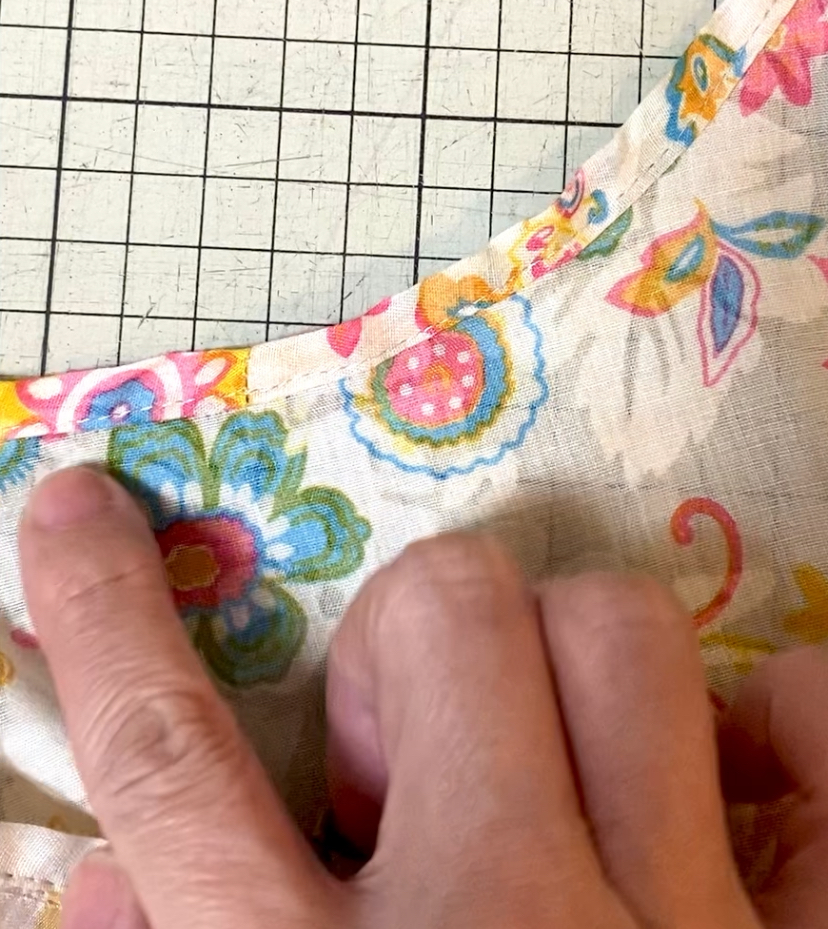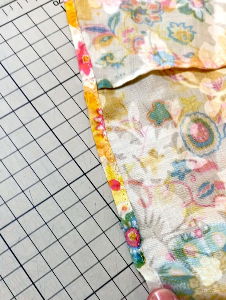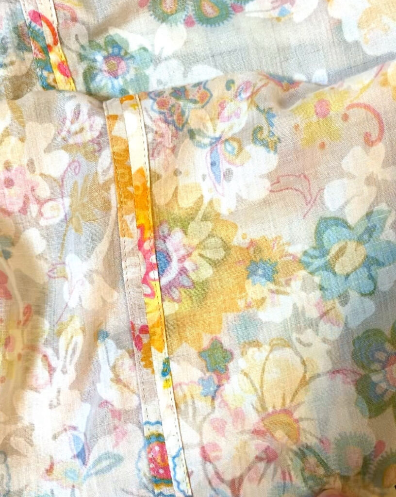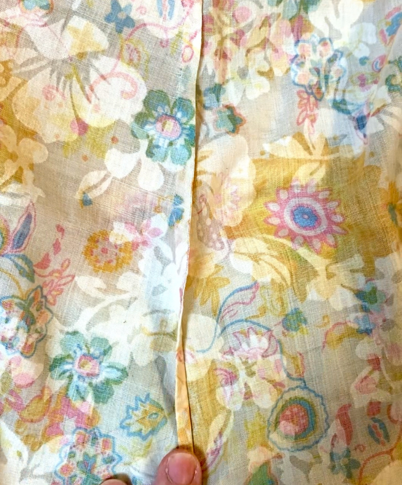 脇とパネルラインは、袋縫いにしています。ロックミシンよりも繊細で、洗濯に耐えられて好きな始末の方法です。