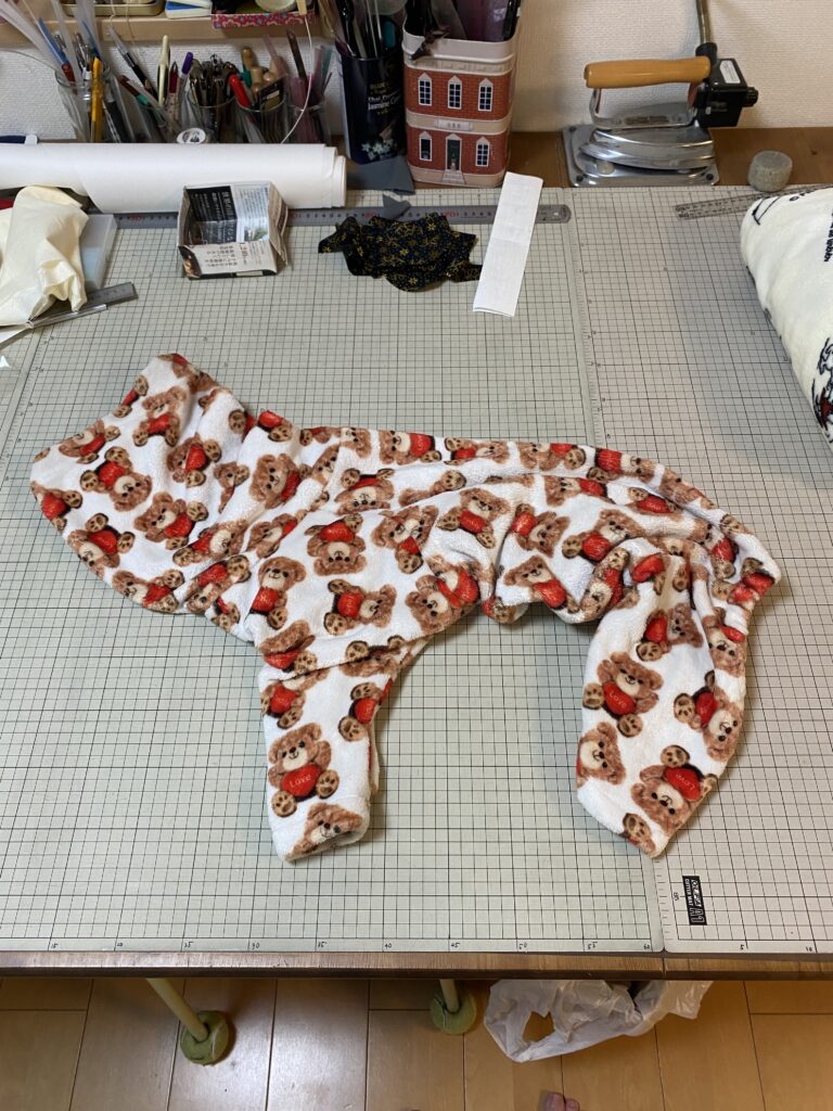 裁断、しっかり注意して製作していきます。可愛い生地なので楽しみです。