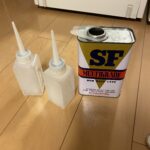 着てった服はこちら。ニットのシャツにジーンズです。トップスは初心者時代に作った物です。上部はリブニットで、下部はポリエステルです。