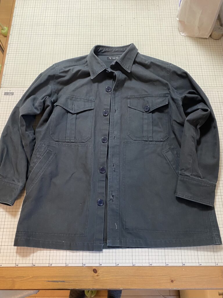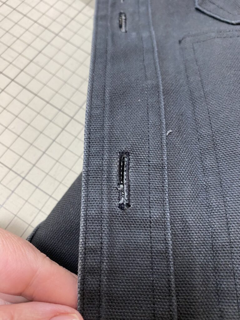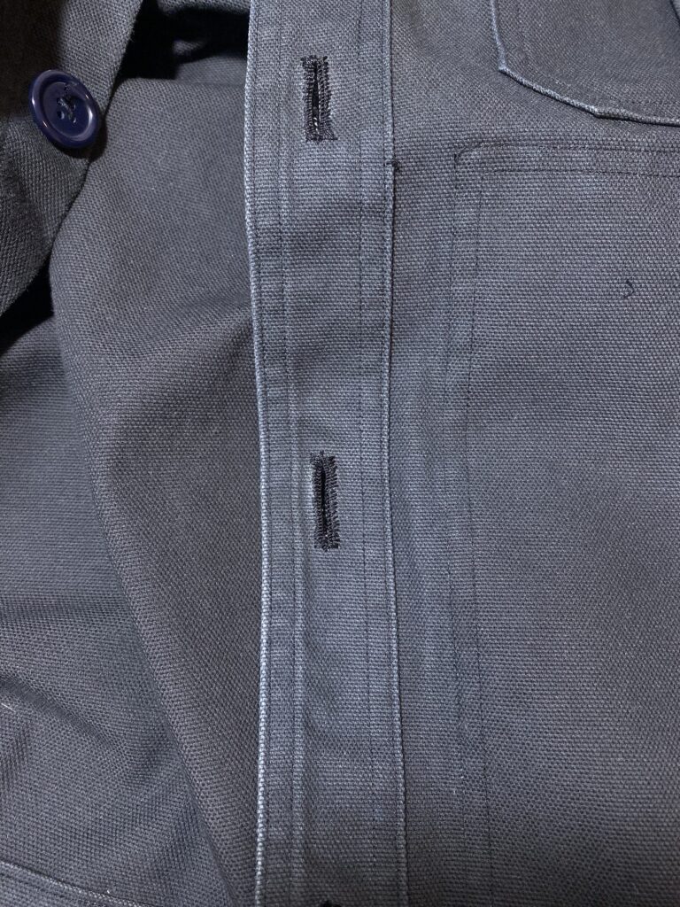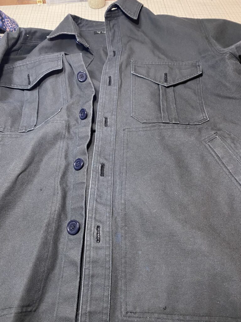 去年も同じようなお直ししています。デザインは似てますが、別のジャケットです。今回よりも更に硬い帆布で苦労しました。