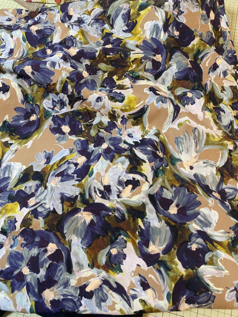 お客様からお預かりした生地です。フランス製の光沢のあるコットンです。こちらを冬っぽくワンピースを仕立てて欲しいとのご依頼です。