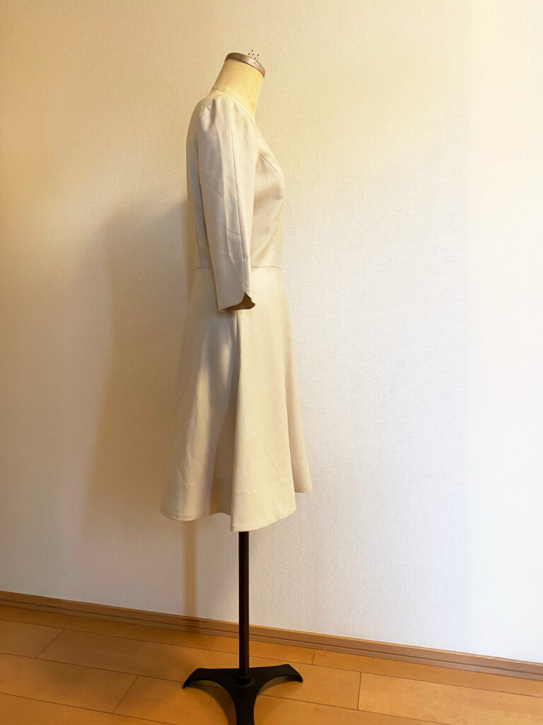 完成です。くすみベージュで色合いもマッチしています。お客様のご要望は、20㎝長く!です。生地もお任せ頂きました。