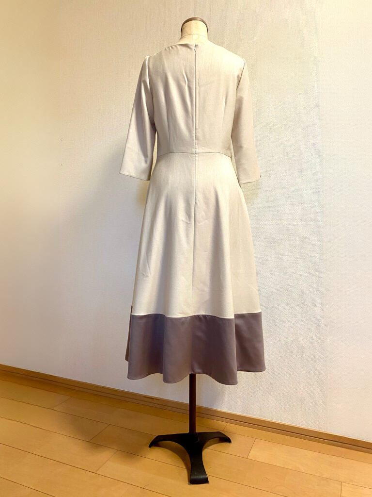 後ろ側です。裾の後ろ中心は「わ」で裁ちました。