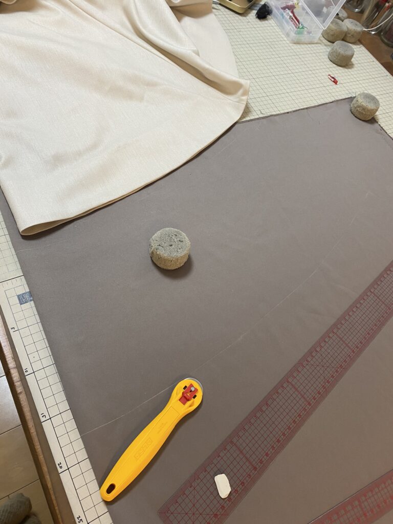使うのは、先日、日暮里繊維街で購入した上品な光沢があるサテンです。