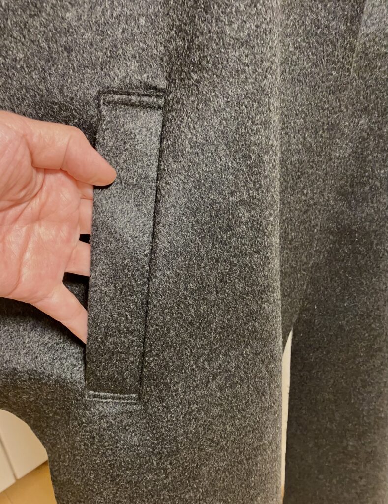 カシミアコートお仕立て進捗★箱ポケット★裏地と本体はしつけ