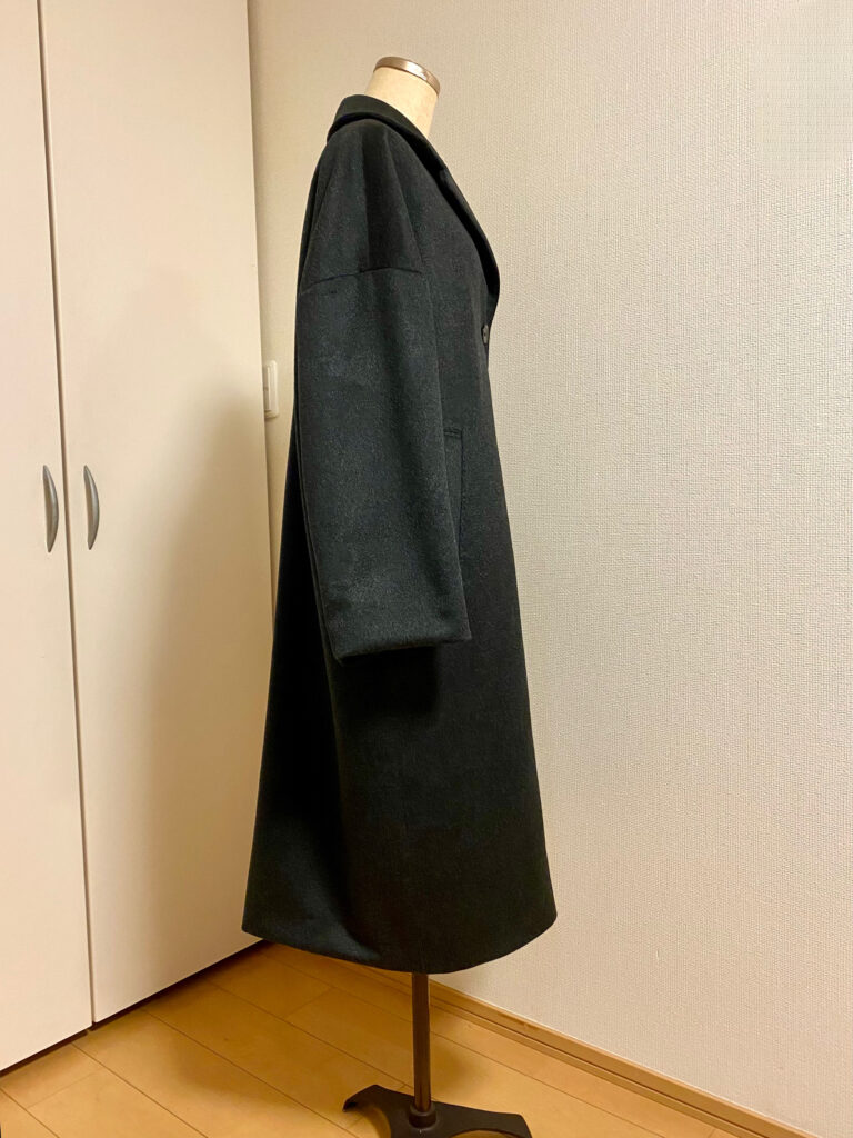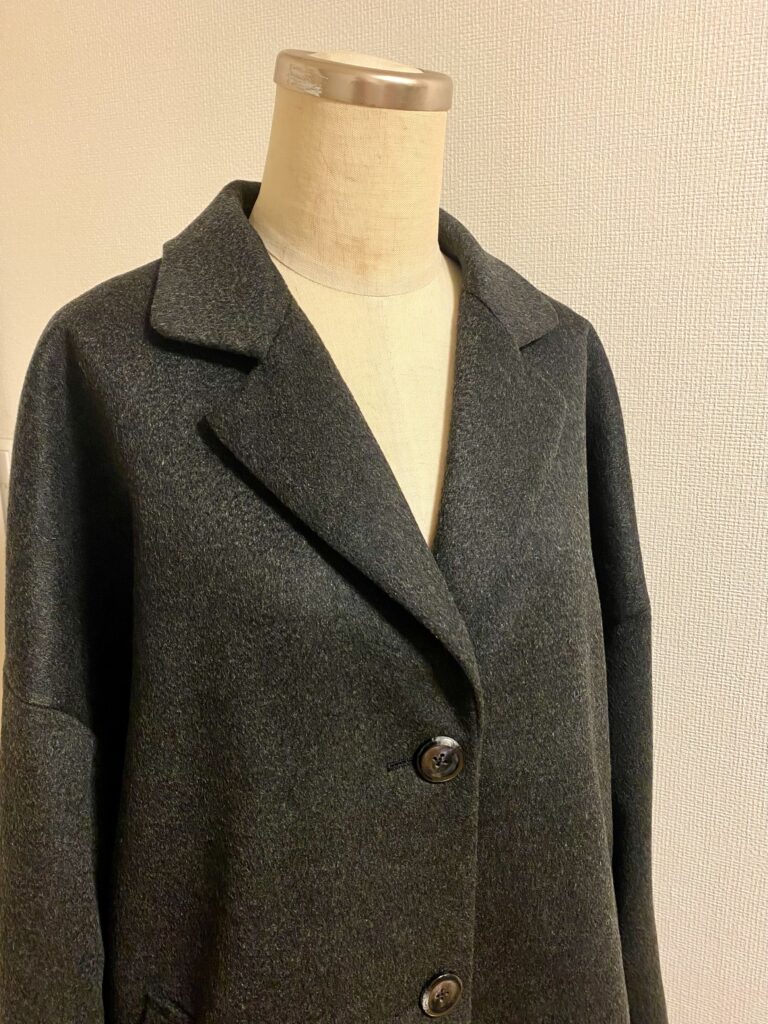 ドロップショルダーで、袖幅たっぷりのお袖です。とにかく、大きめで楽なコートにして欲しいとの事でした。