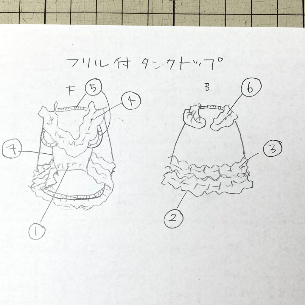 フリルやリブがある服だと、長方形のパターンがいっぱいです。とにかく、長さを間違えないように、書いてからも長さを再確認しています。