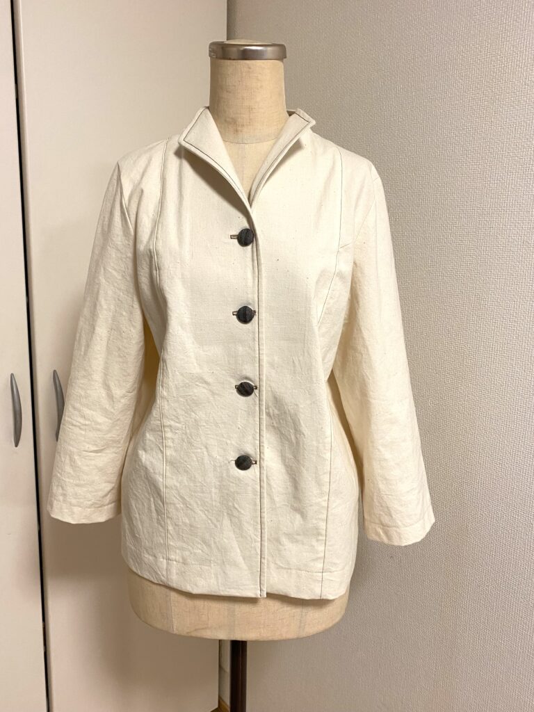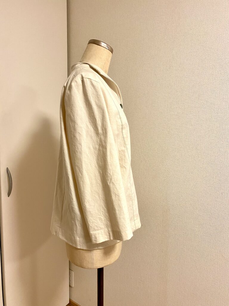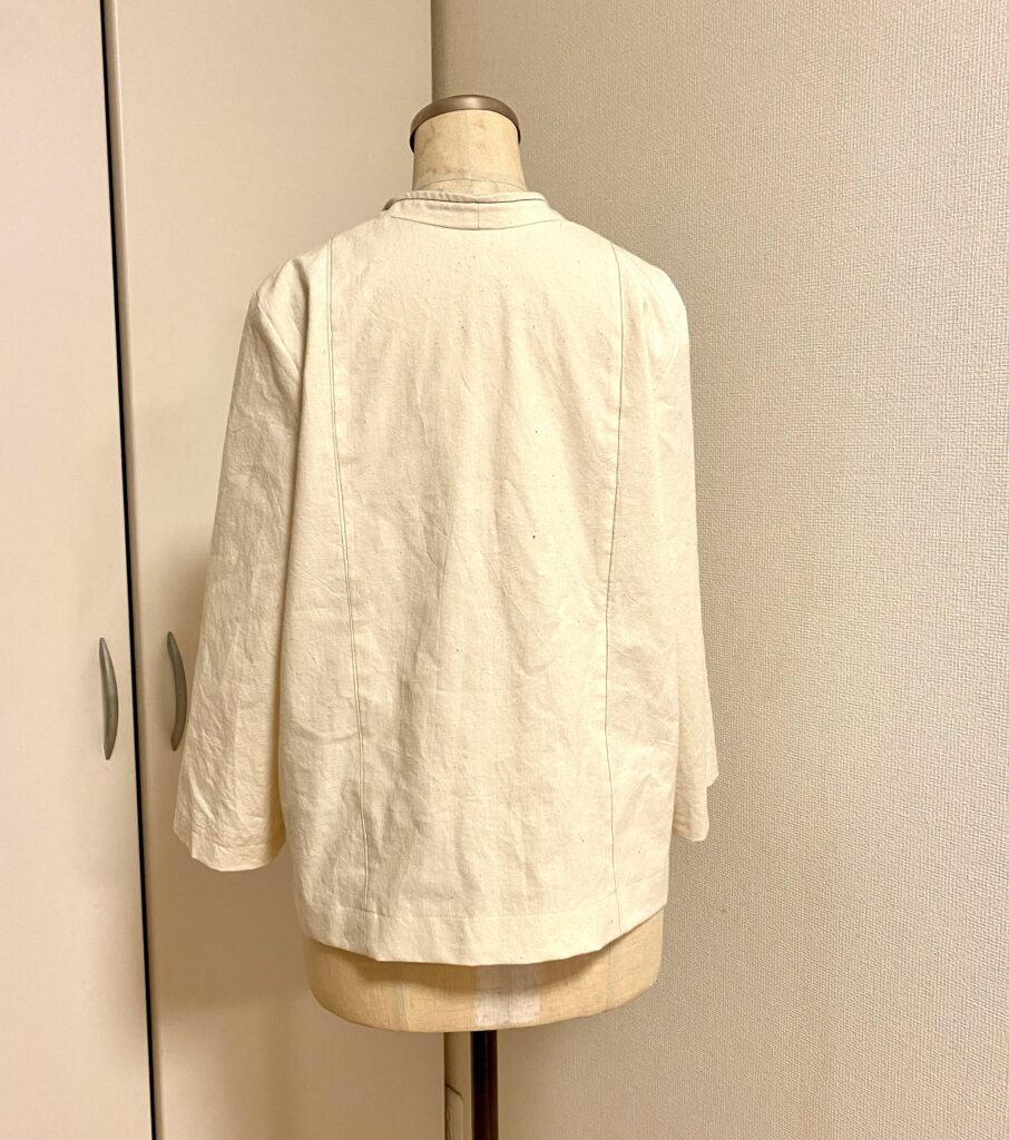 ラペルはあるけど、後ろはスタンドカラーになるデザインです。