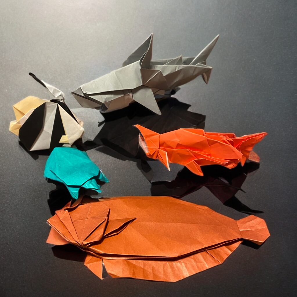 実は、私も偶然にも折り紙していたところです。私が折っていたのは水生生物。