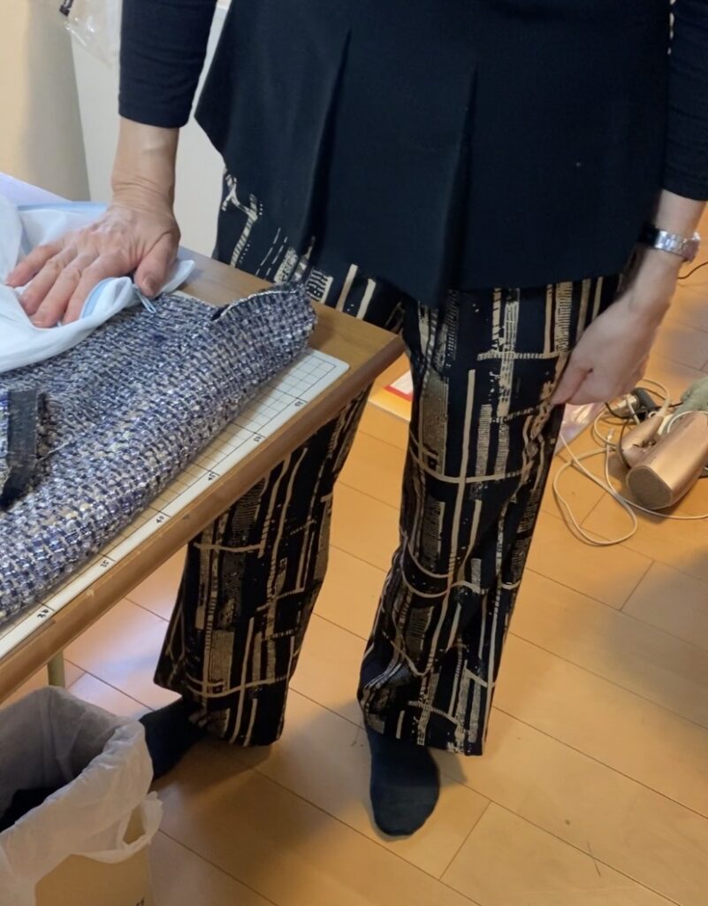 ユリトワ洋裁教室で生徒さんが次に作るものを相談しています。