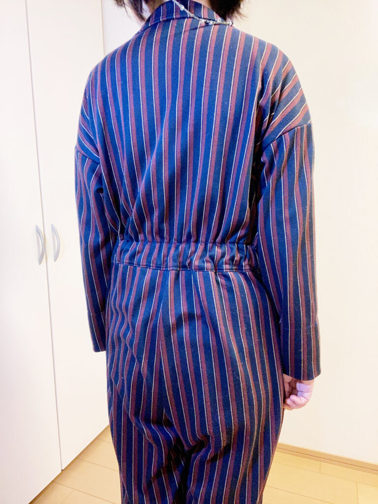 後ろウエストにゴムを通しています。