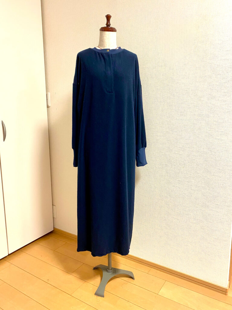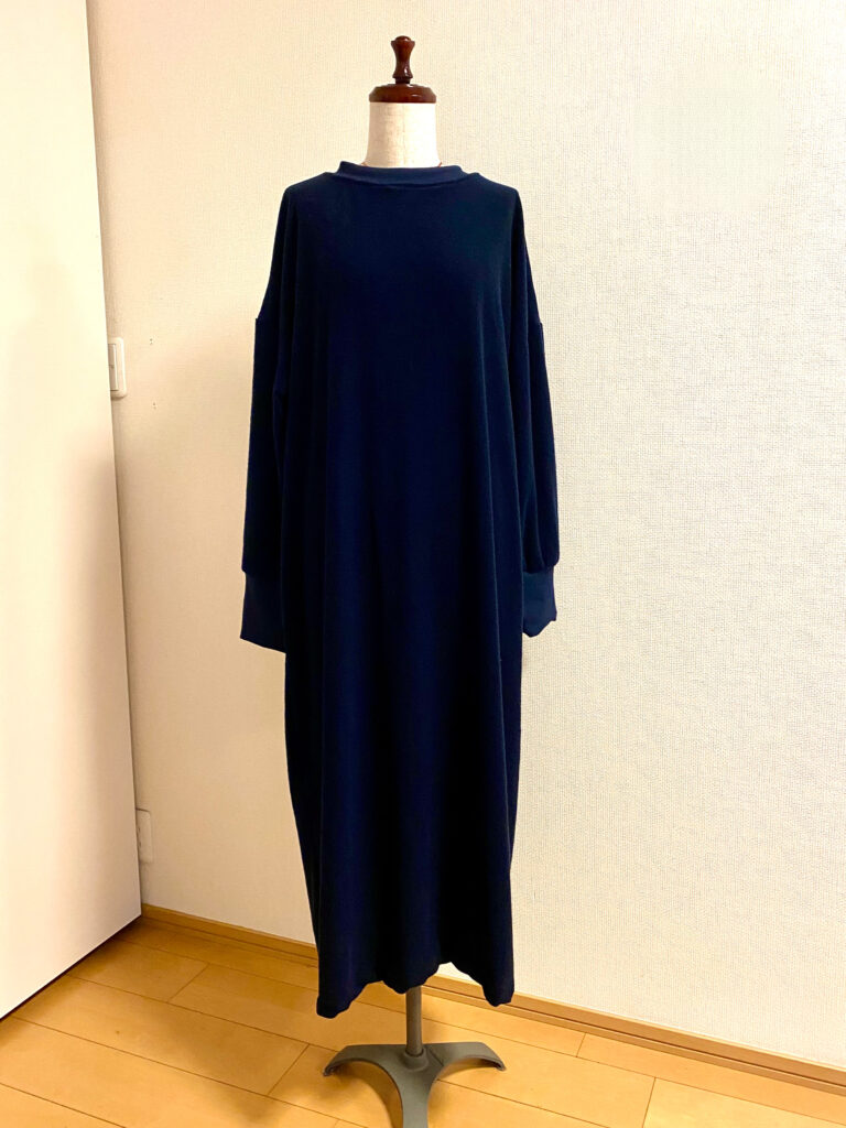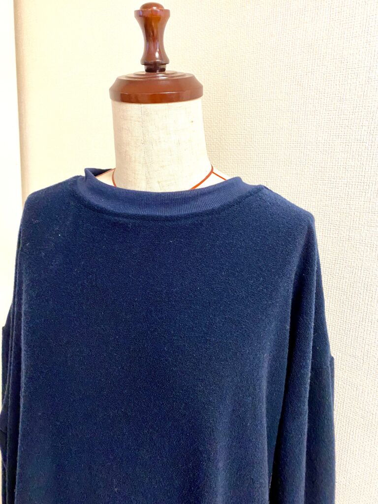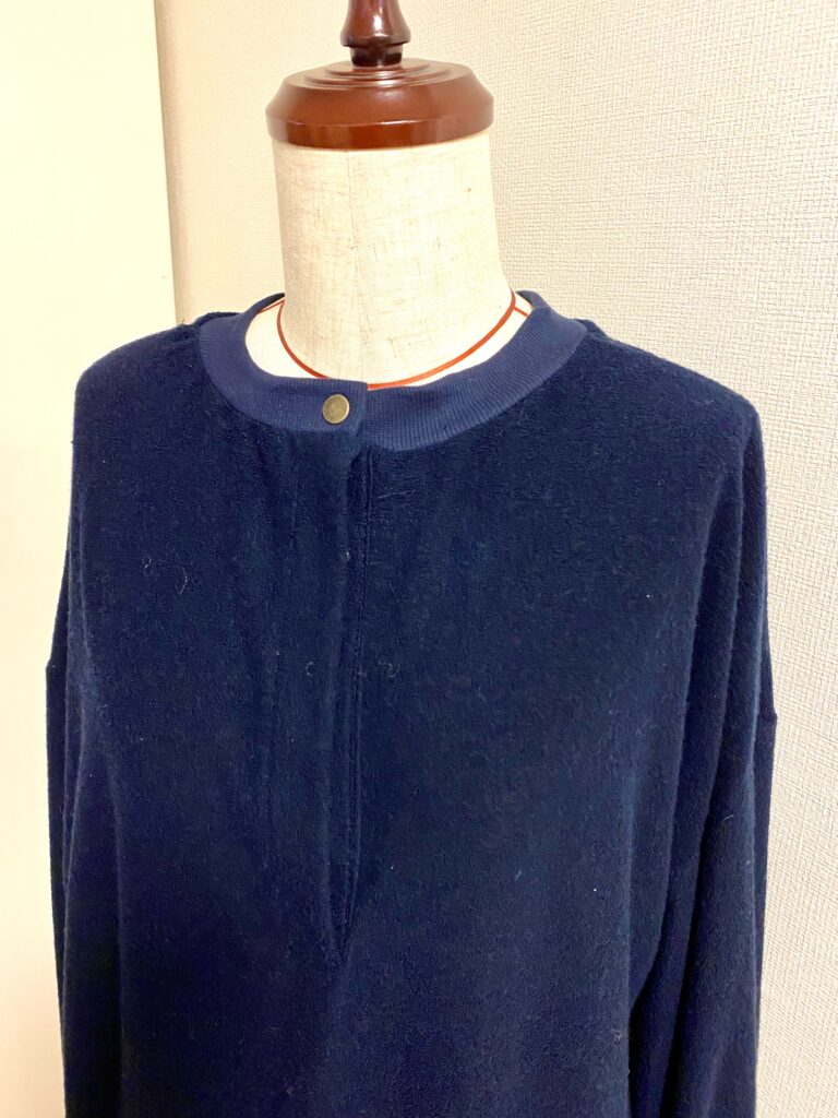 とにかく、ゆったりでラクチンで、とのご依頼。袖口と衿ぐりにはリブです。