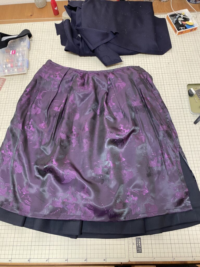 バンコクで仕立てたスカートだそうですが、柄が入っています。