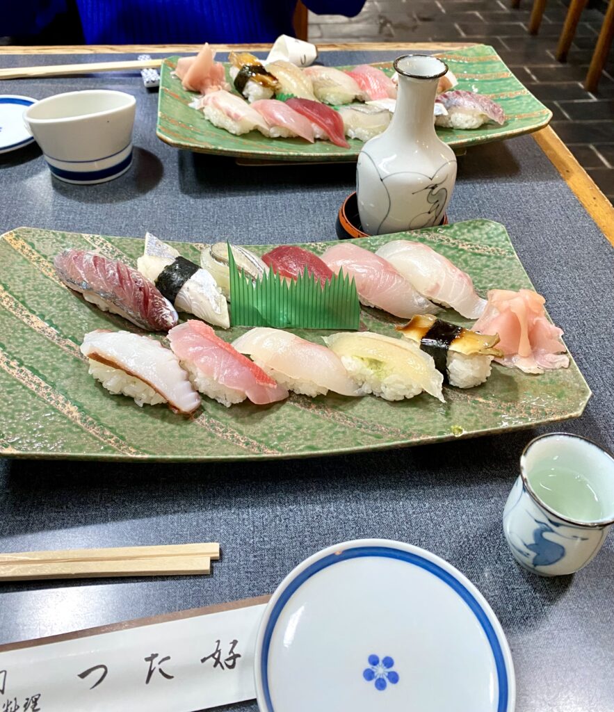 そのあと、残った友人と二人で地物のにぎりで日本酒!