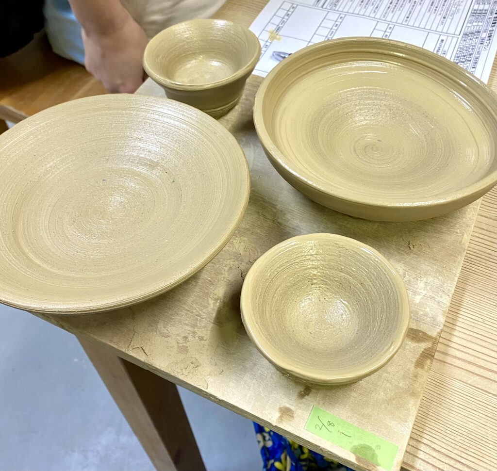 日本酒、飲んじゃったけどその後、ろくろを使って陶芸体験。これは友人が作った平皿と小鉢。