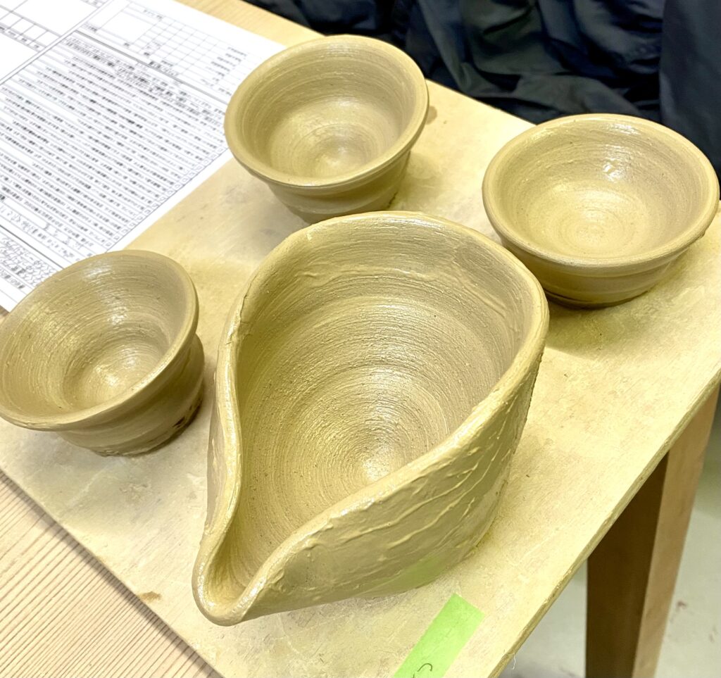 私は片口とお猪口を作りました。片口は緑、お猪口はピンク色に頼みました。