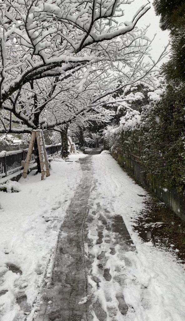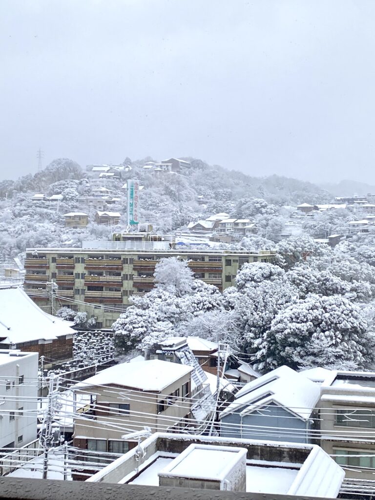 こちらは翌朝の伊東温泉の山側です。美しい銀世界。露天風呂の雪見風呂で満喫できました。
