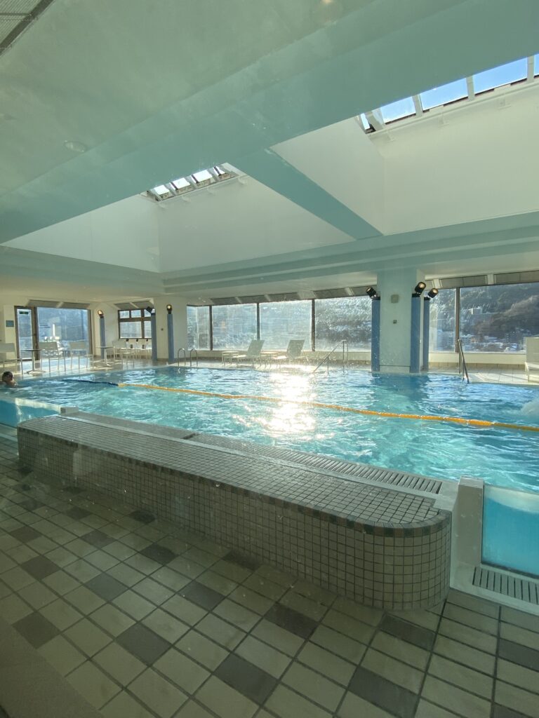 ホテルの最上階にあるプール。がらがらで最高!クロールで30分泳ぎました。