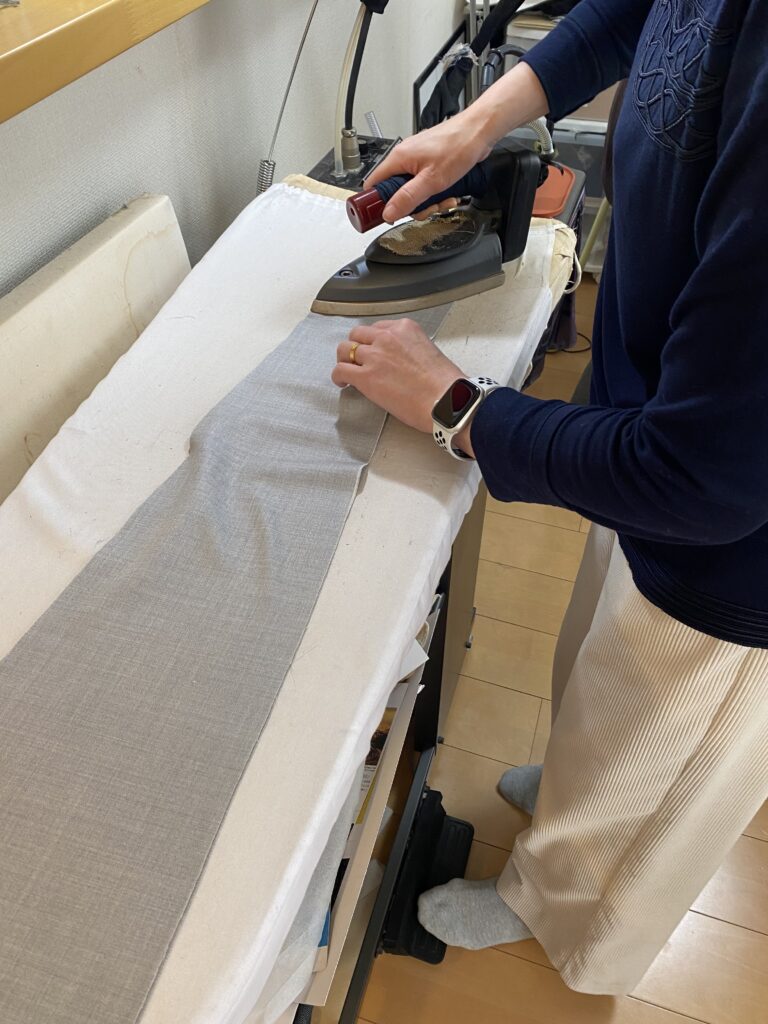 アイロンでくせ取りをしている所です。
