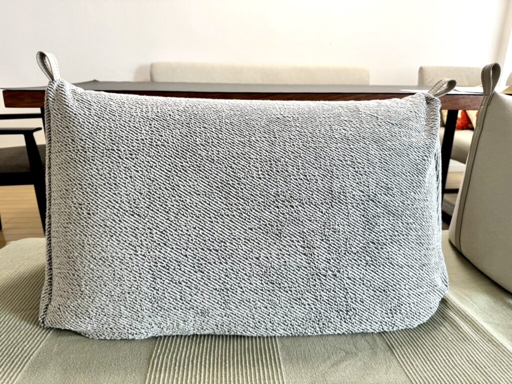 製作過程をブログに書きましたが、ソファーに掛けてみた報告はまだでしたね。