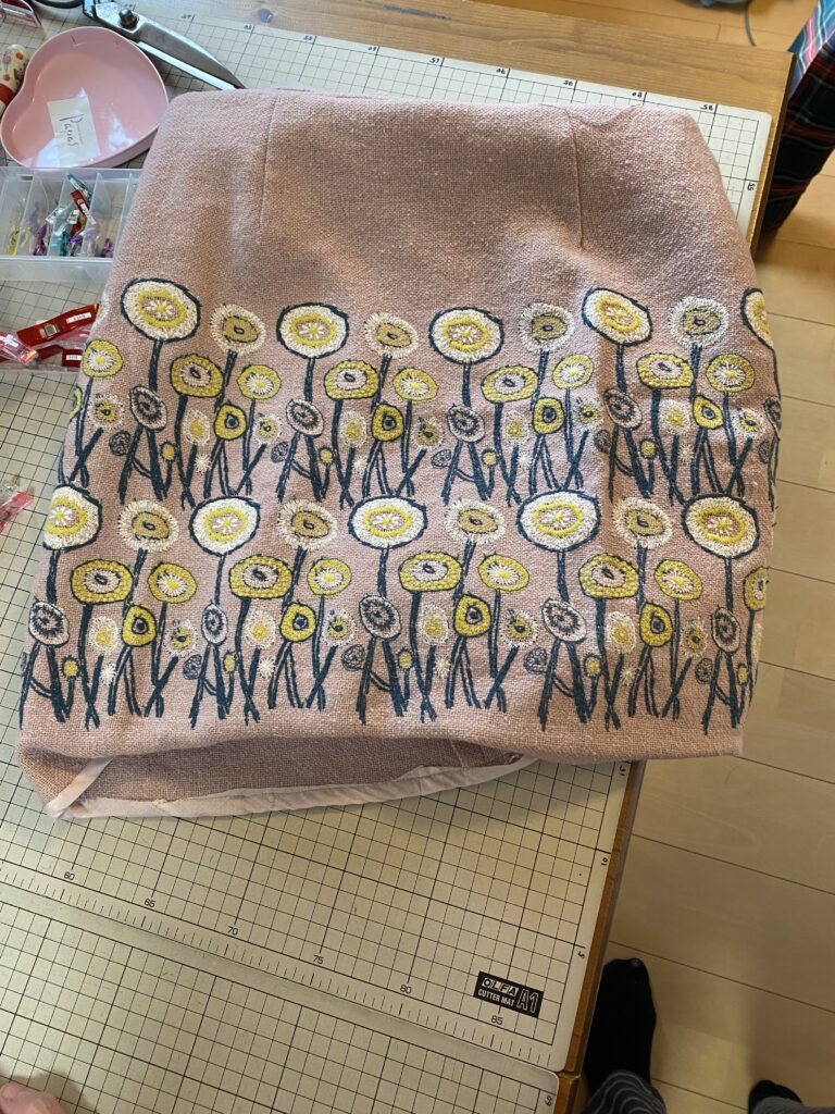 コンシールファスナーを付けて裏地を付けてと、分からないところだけ習いに見える生徒さんです。