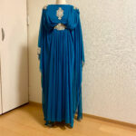 肩を縫ったので、羽織って丈を決めている所です。あんまり長くしない方がよさそうなデザインだな。