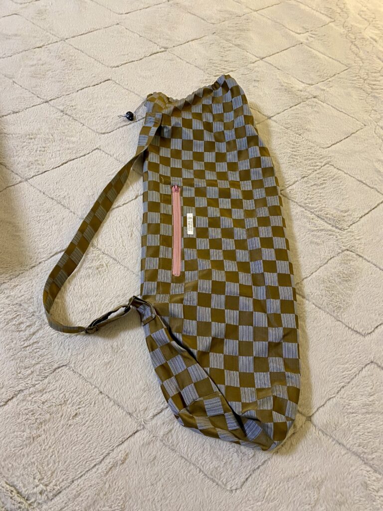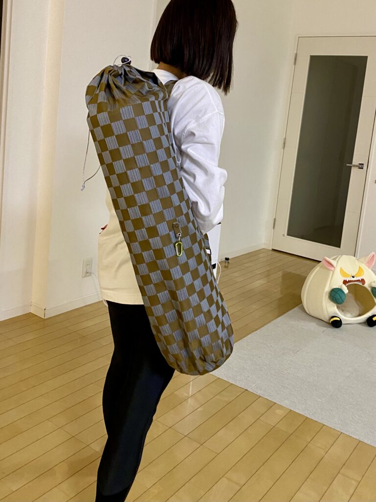 ヨガマットを運ぶためのバッグを作っています。こちらはとても人気で沢山ご依頼頂いています。