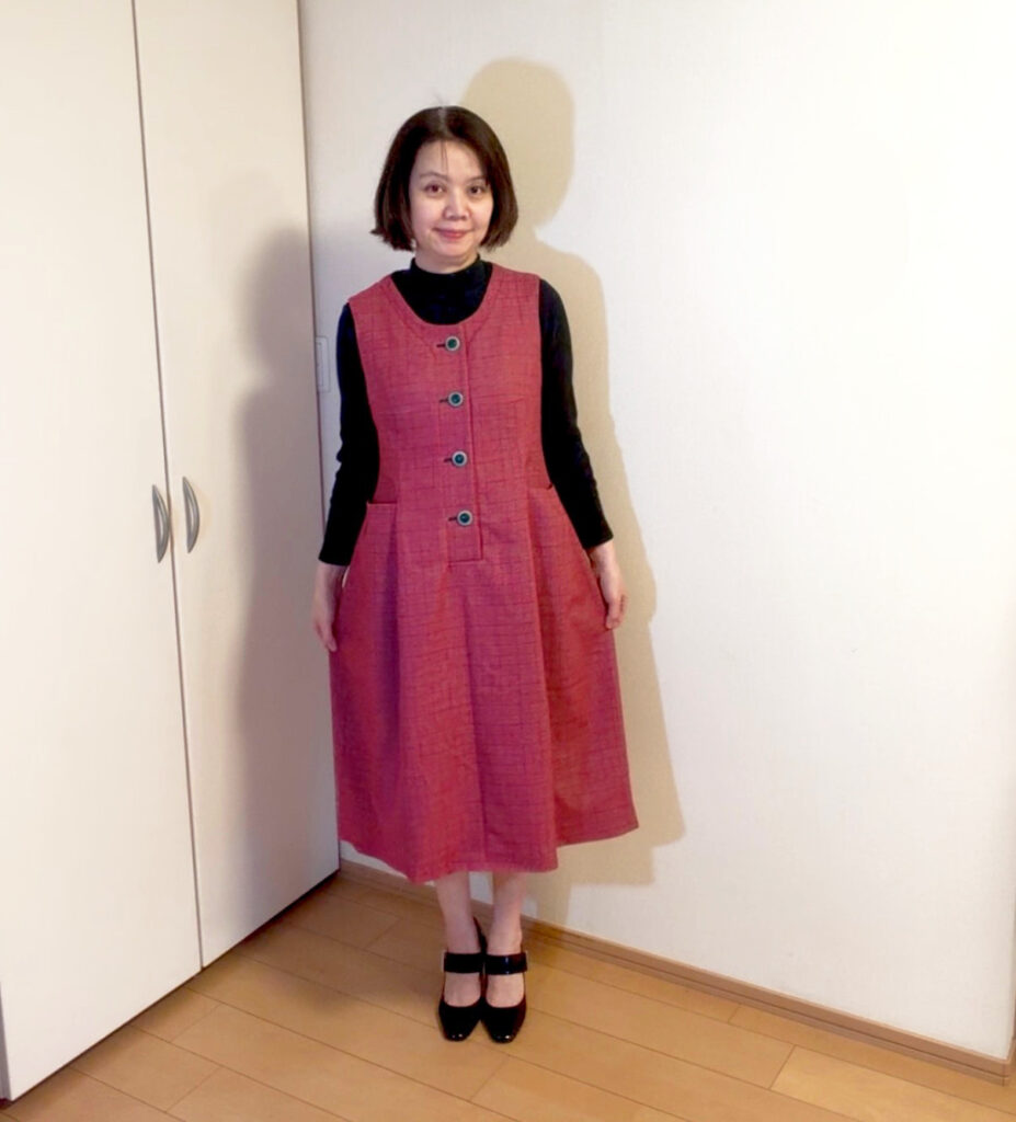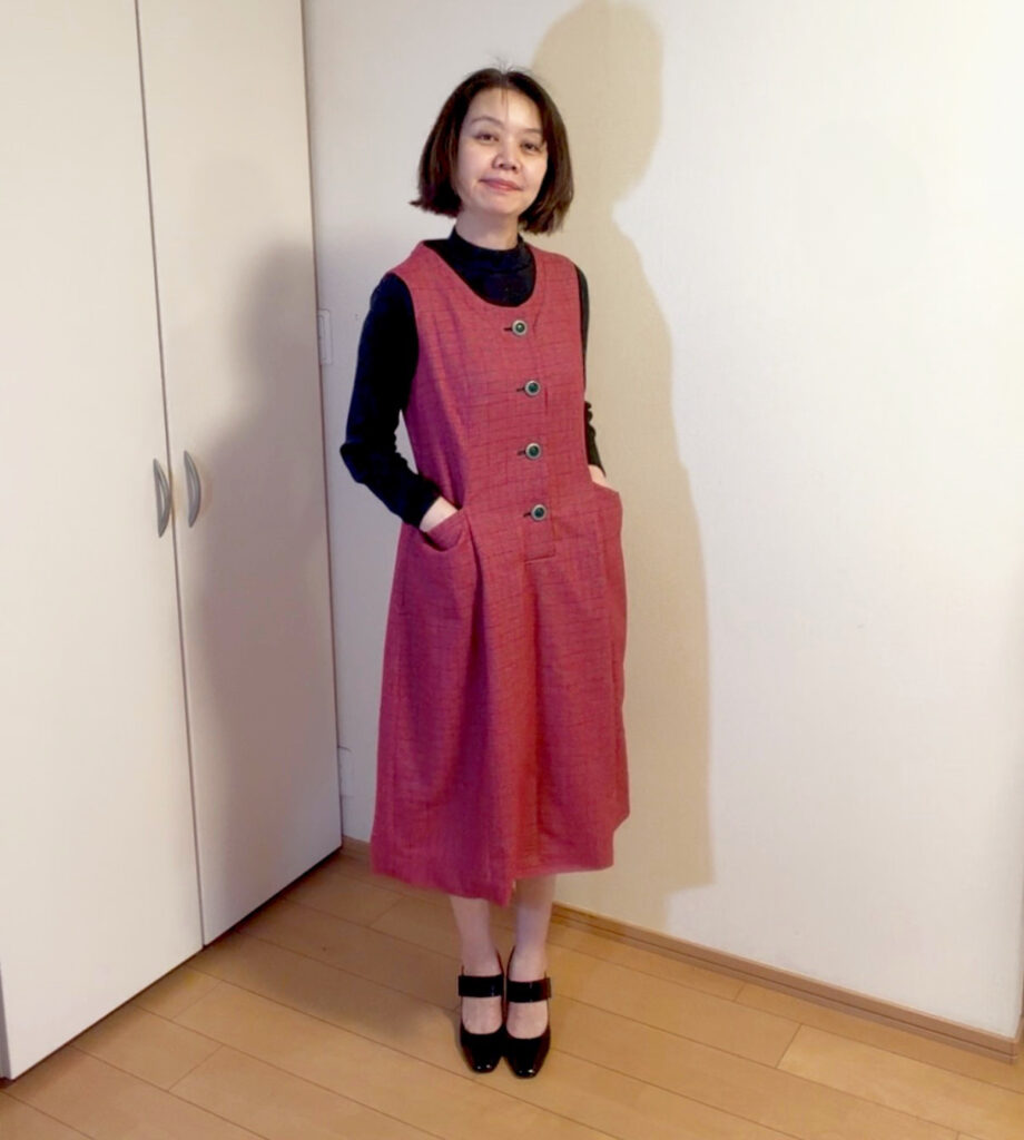 のろのろと進めていた自分服。やっと完成して着てみました。