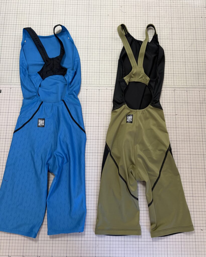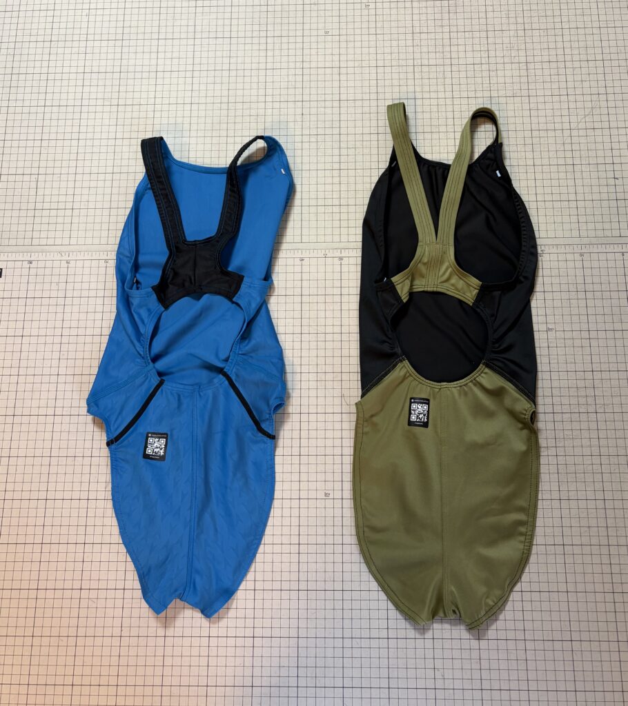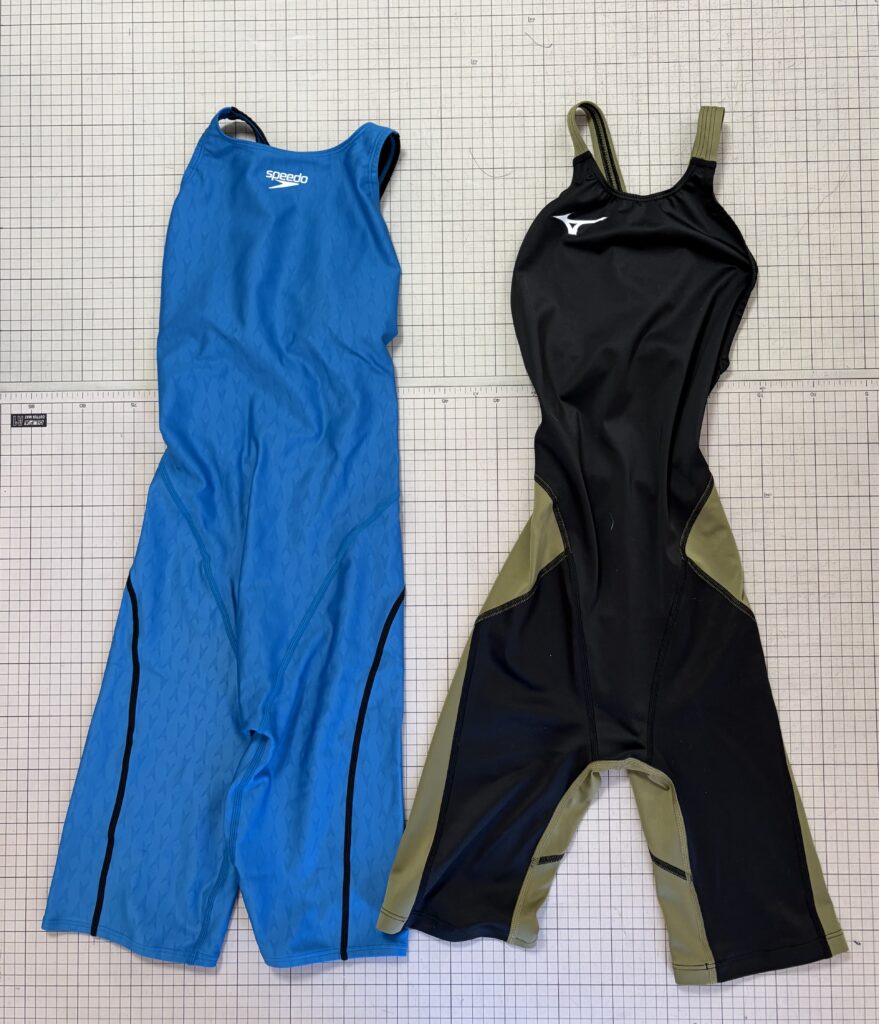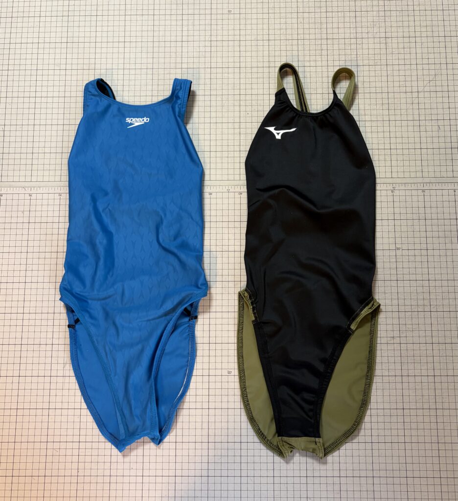 競泳水着が2着です。両方とも、ハイレグにして欲しいとのご依頼です。
