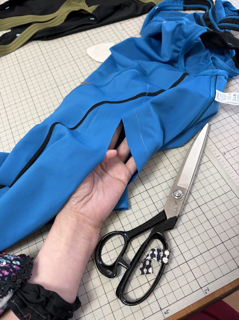後ろ側です。デザインも違うし、サイズも少し違いますが、サンプルになる水着を送って頂いたので、参考にしてカッティングしていきます。