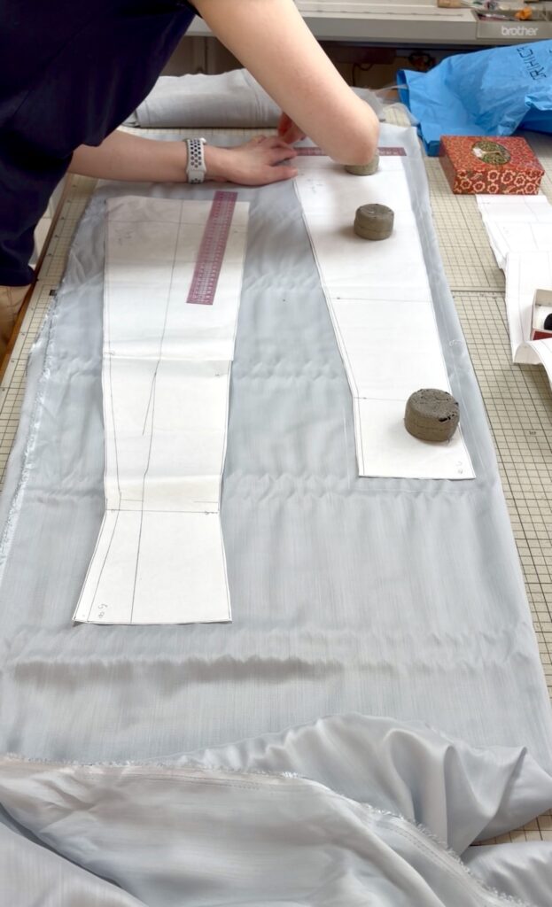 こちらの生徒さんは、ジャンパースカートの裏地の裁断に入りました。