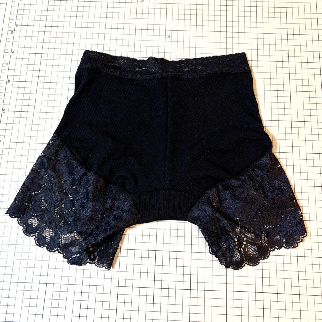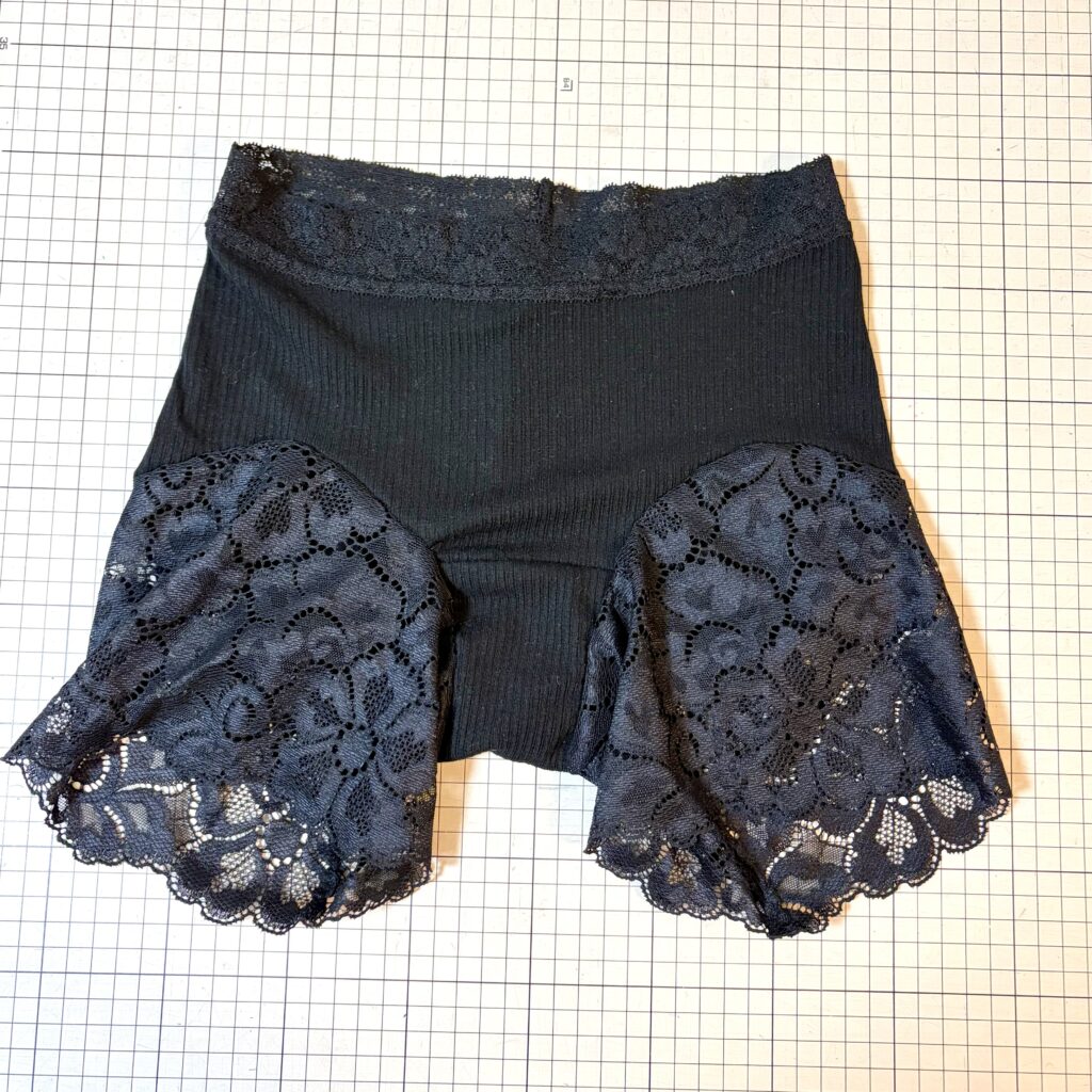 股上を深めに足のレースも長めに作ってみました。足のレースを長くしたことで、ずり上がらず安定しています。