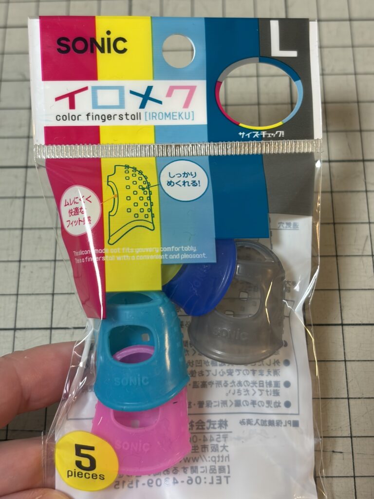 これから糸を解く時は、親指にイロメクⅬサイズ、中指にイロメクMサイズで臨もうと思います。